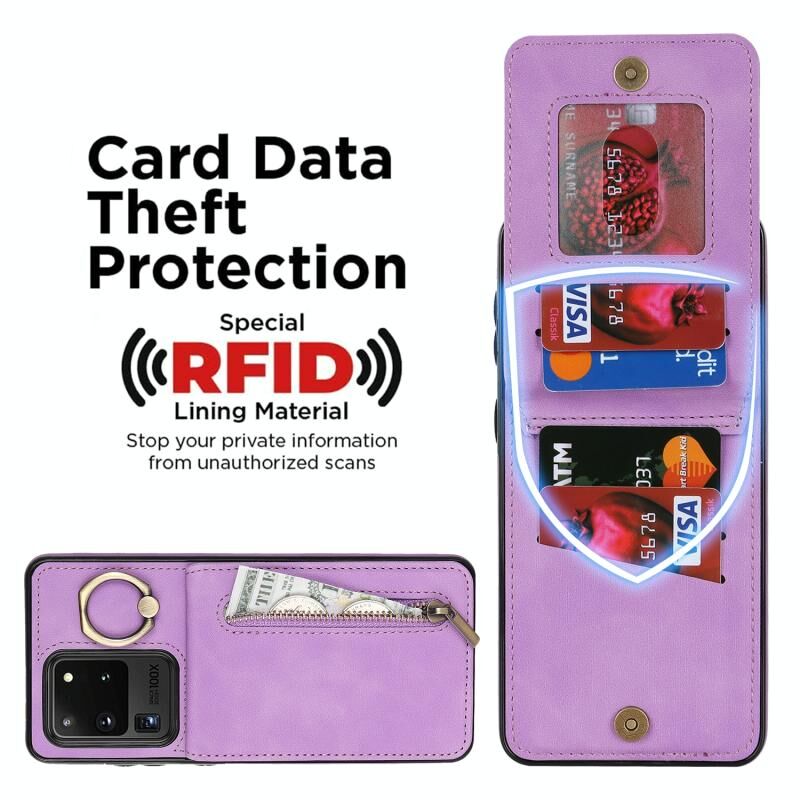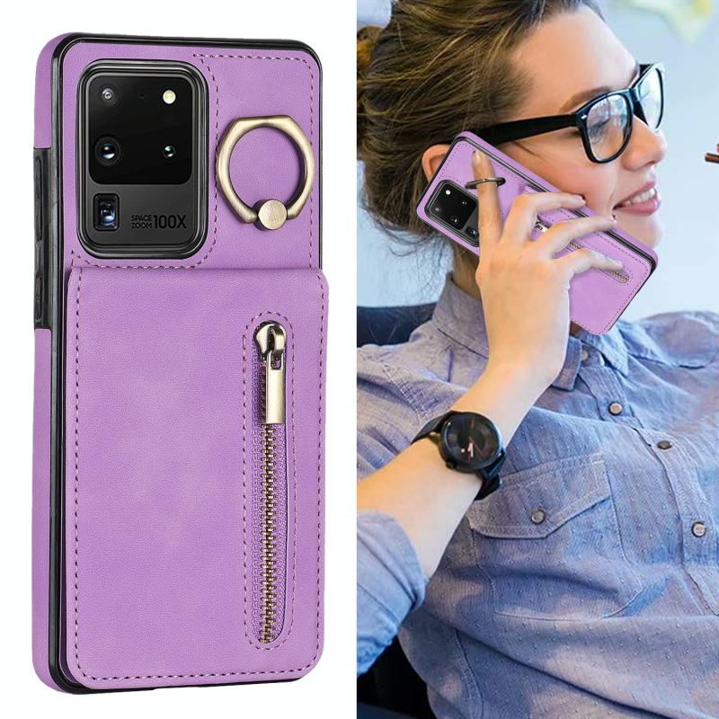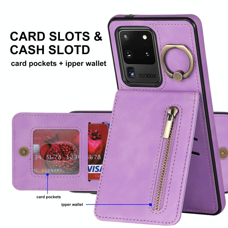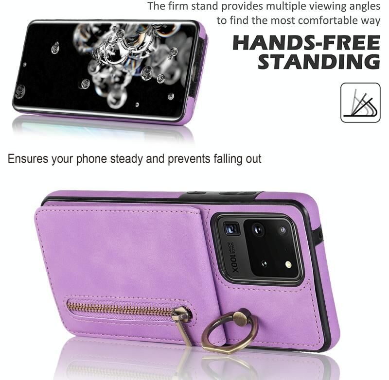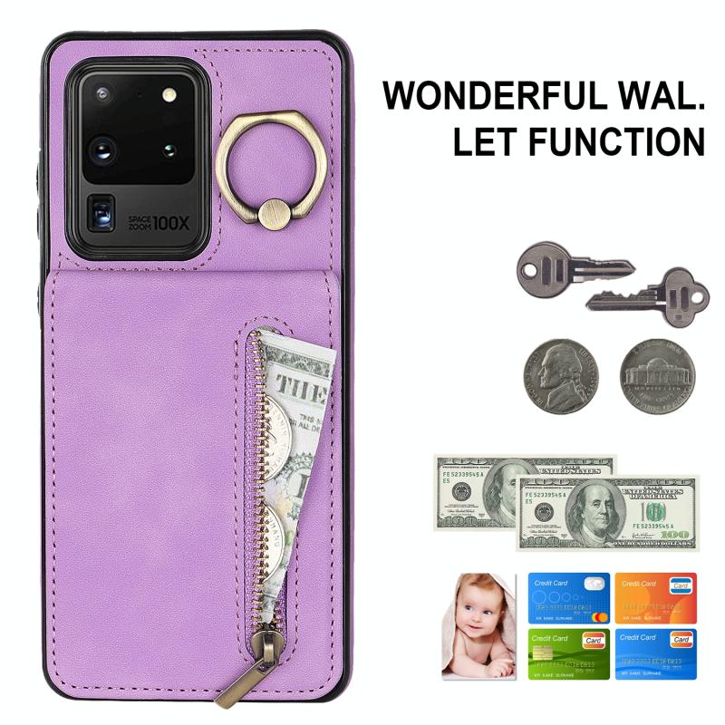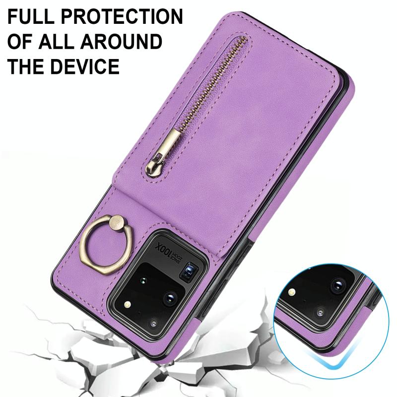 Θήκη κινητού τηλεφώνου Samsung Galaxy S20 Ultra Retro με δακτύλιο και θήκη καρτών RFID με φερμουάρ (Μωβ)