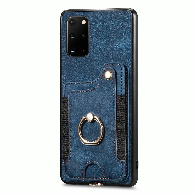 Για το Samsung Galaxy S20 Ultra Retro δέρμα-feel δαχτυλίδι δαχτυλίδι πολλαπλών καρτών πορτοφόλι υπόθεση τηλεφώνου (μπλε)