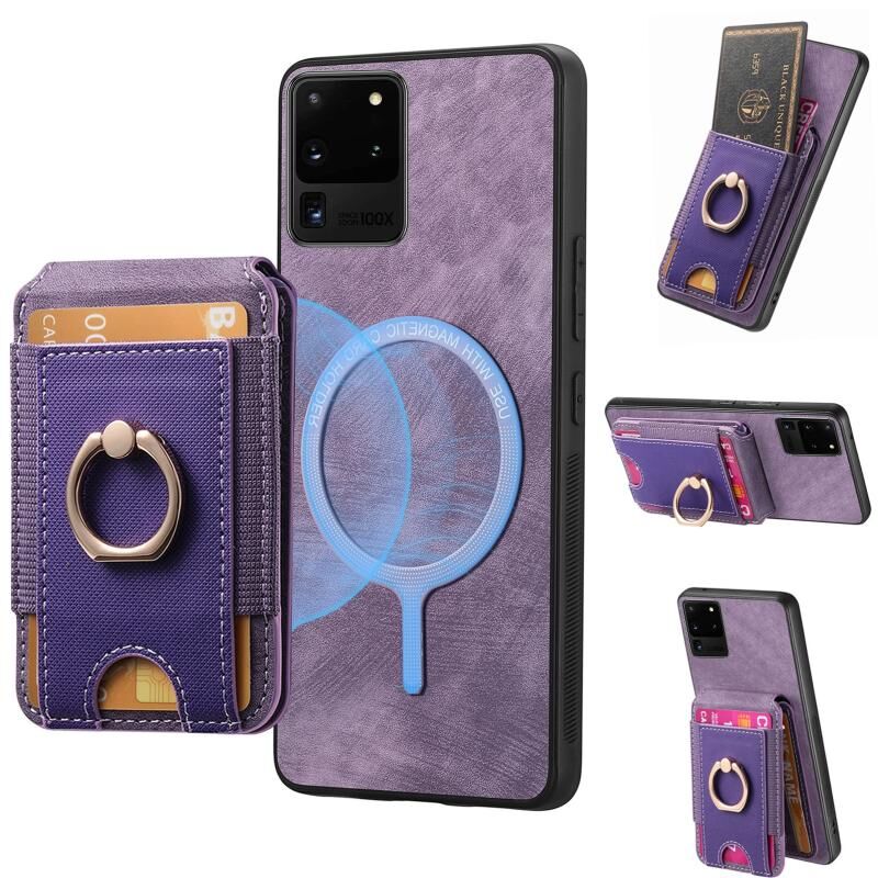 Για Samsung Galaxy S20 Ultra Retro Splitable Μαγνητική Stand κάρτα τσάντα τσάντα δέρμα τηλέφωνο υπόθεση (Μωβ)