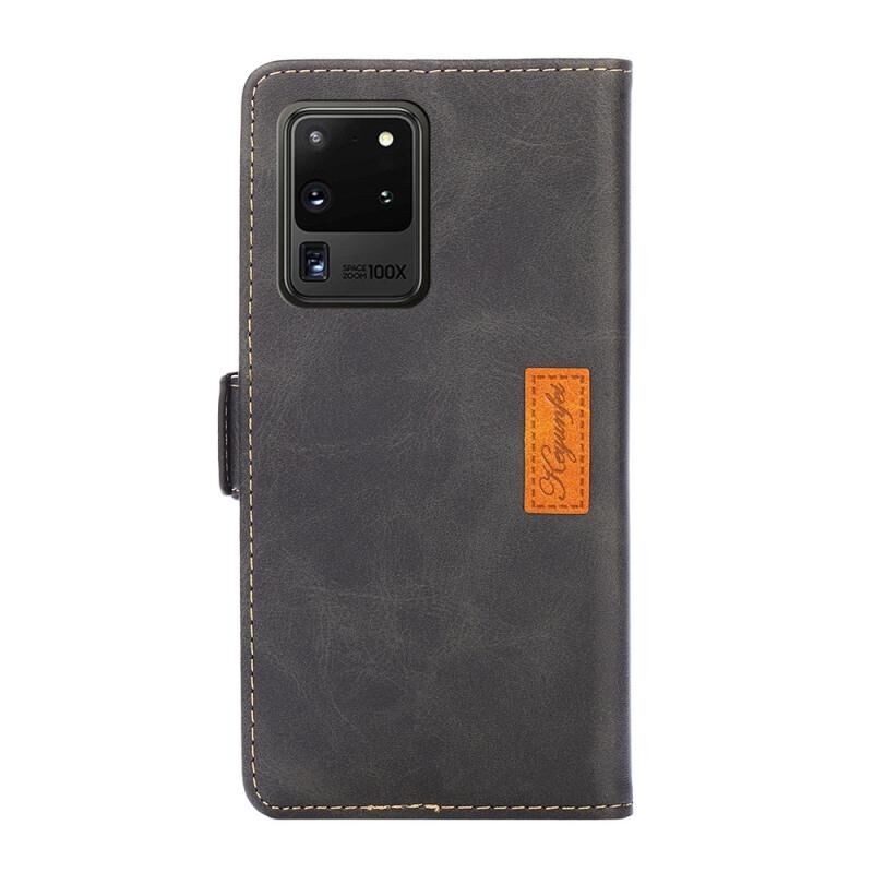 Για Samsung Galaxy S20 Ultra Retro υφή αντίθεση χρώμα πλευρά πόρπη οριζόντια Flip δερμάτινη θήκη με θήκη & υποδοχές για κάρτες & πορτοφόλι (μαύρο)