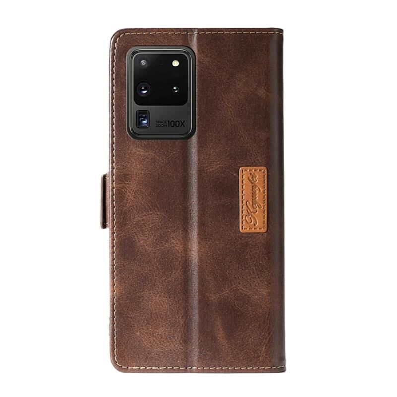Για Samsung Galaxy S20 Ultra Retro υφή αντίθεση χρώμα πλευρά πόρπη οριζόντια Flip δερμάτινη θήκη με κάτοχο & υποδοχές για κάρτες & πορτοφόλι (καφέ)
