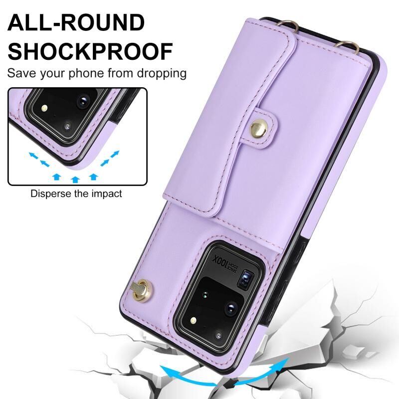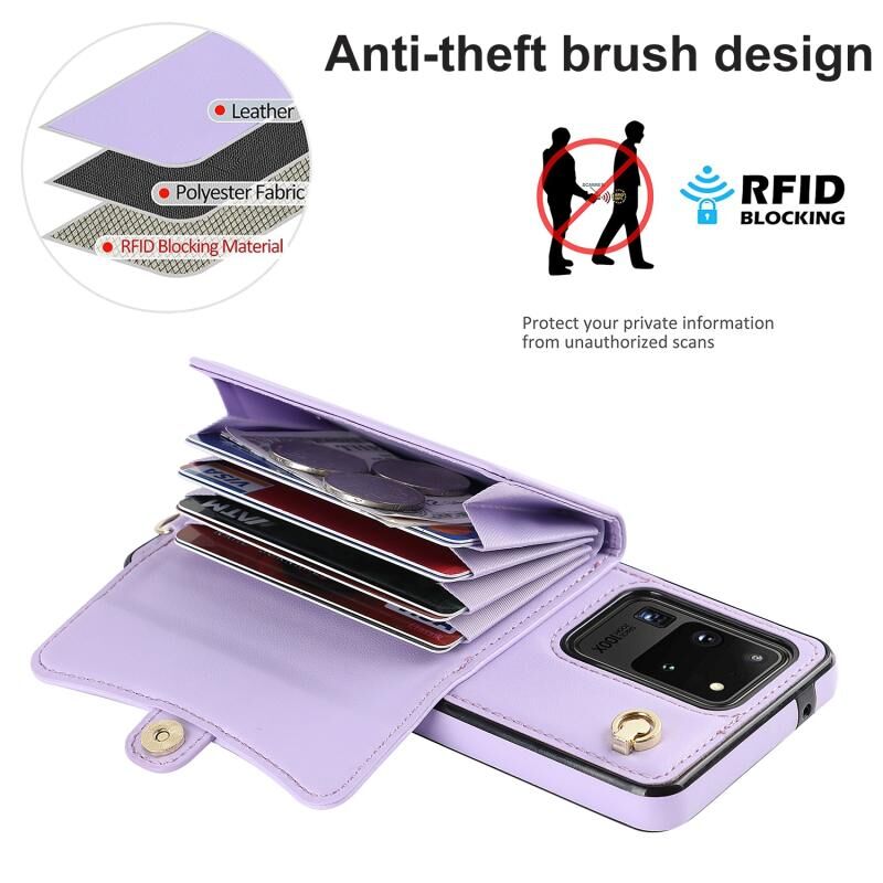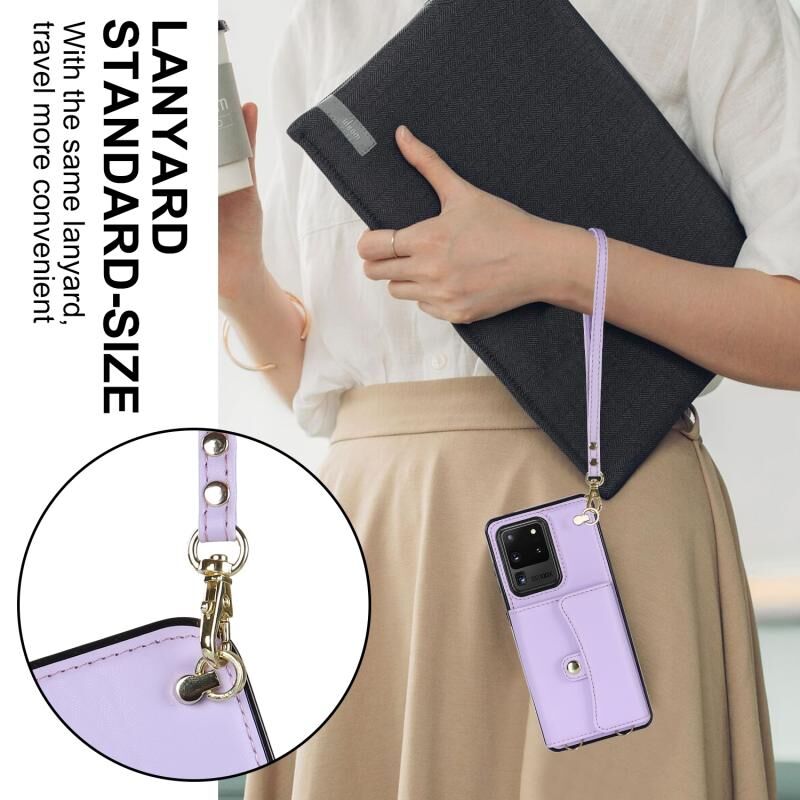 Για Samsung Galaxy S20 Ultra RFID Slot κάρτα δερμάτινη θήκη τηλεφώνου με μακρύ κορδόνι (μωβ)