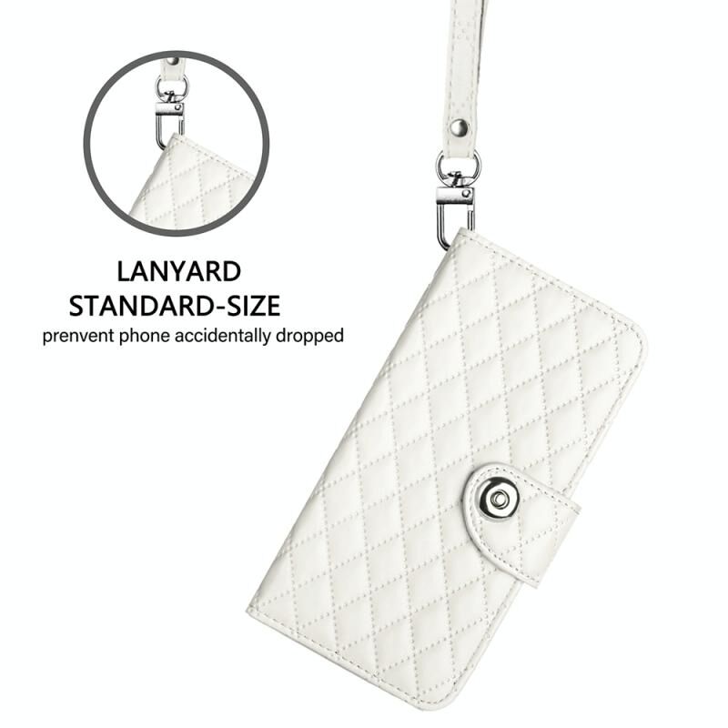Για Samsung Galaxy S20 Ultra Rhombic Texture Flip δερμάτινη θήκη τηλεφώνου με κορδόνι (λευκό)