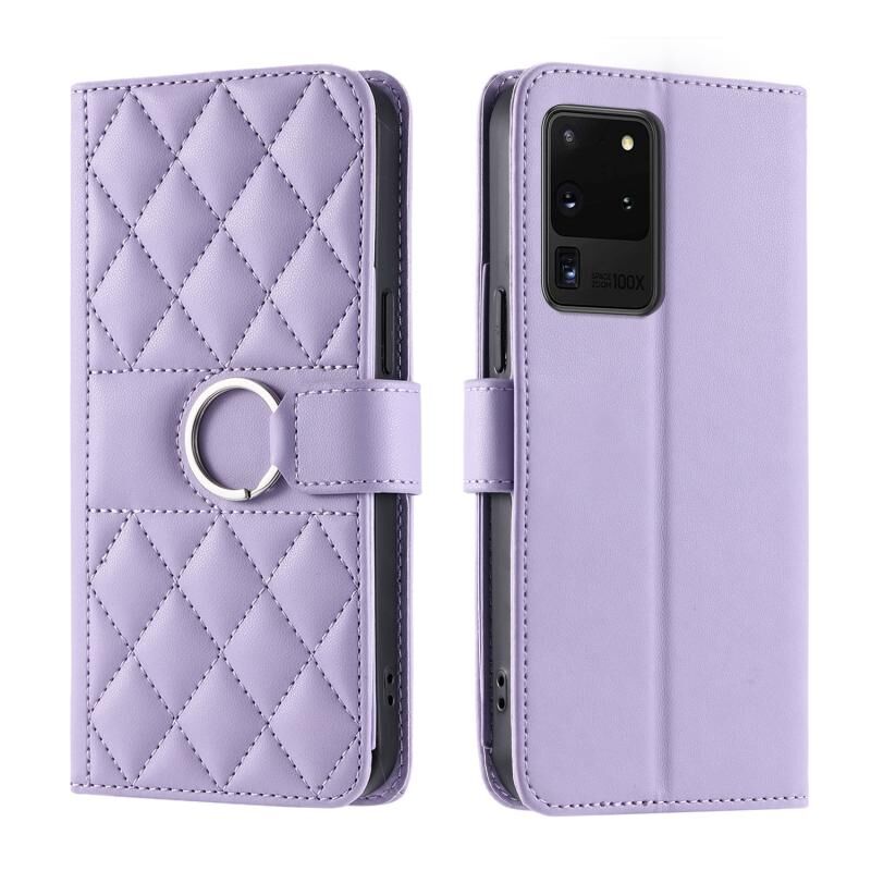 For Samsung Galaxy S20 Ultra Ring Buckle Rhombic Leather Phone Case(Purple)