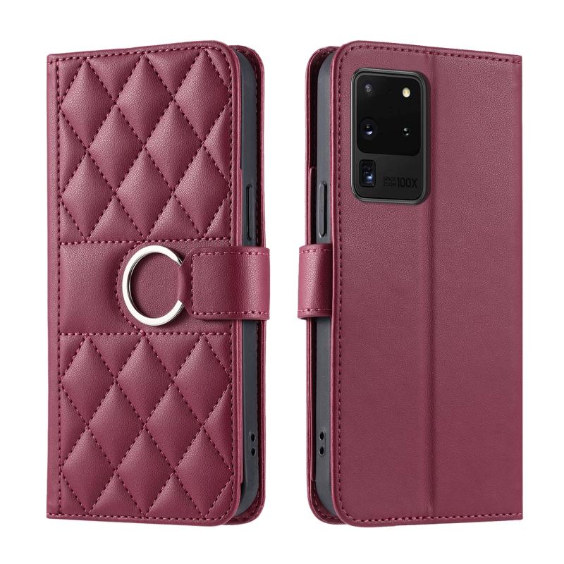 For Samsung Galaxy S20 Ultra Ring Buckle Rhombic Leather Phone Case(Red)
