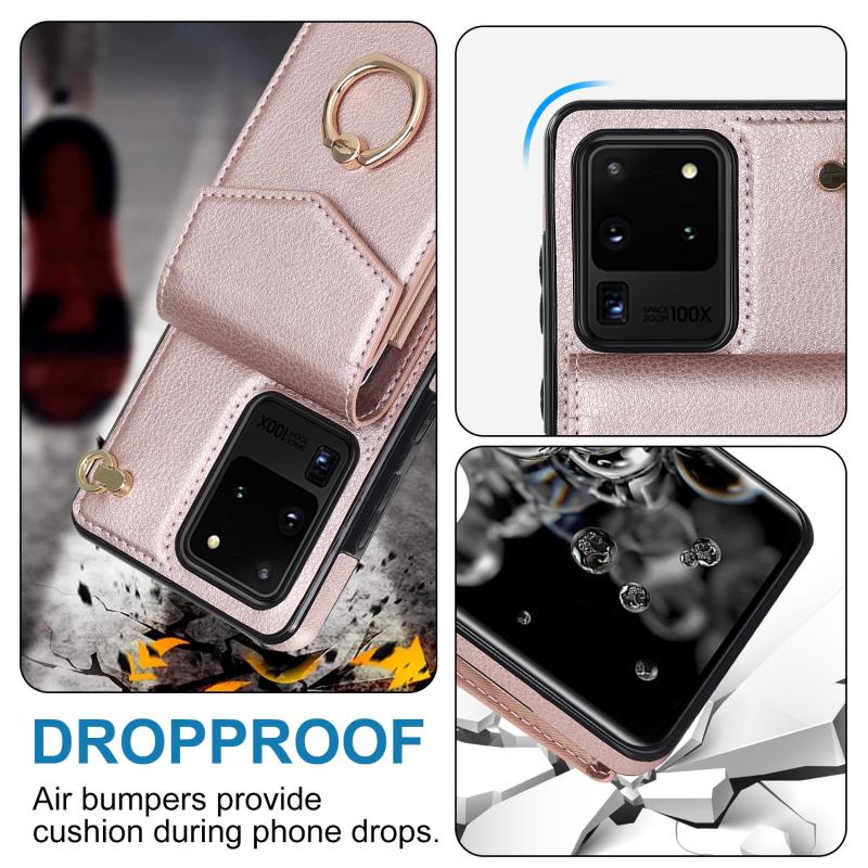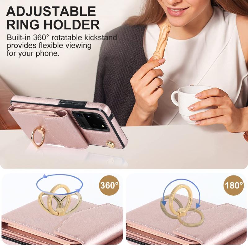 Θήκη κινητού τηλεφώνου για Samsung Galaxy S20 Ultra με δακτύλιο στήριξης και θήκη για κάρτες RFID (Μέντα Πράσινο)
