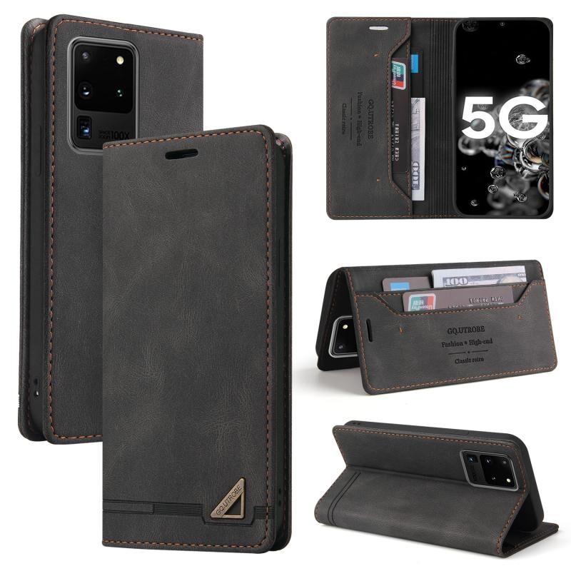 Για Samsung Galaxy S20 Ultra Skin Feel Anti-theft Brush Οριζόντια Flip δερμάτινη θήκη με θήκη & υποδοχές για κάρτες & πορτοφόλι (Μαύρο)