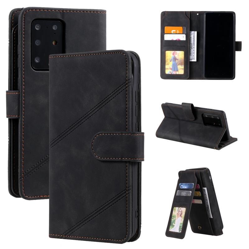 Για Samsung Galaxy S20 Ultra Skin Feel Business Οριζόντια Flip PU δέρμα υπόθεση με θήκη & υποδοχές πολλαπλών καρτών & πορτοφόλι & κορδόνι & κορνίζα & πλαίσιο φωτογραφιών (Μαύρο)