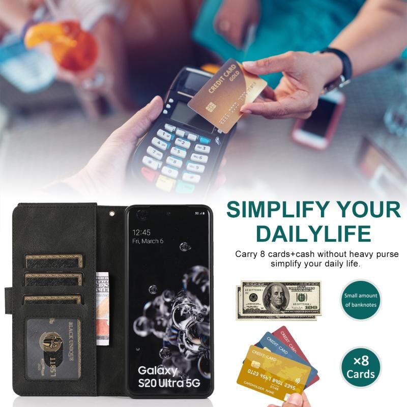 Για Samsung Galaxy S20 Ultra Skin-feel Crazy Horse υφή φερμουάρ τσάντα πορτοφόλι οριζόντια Flip δερμάτινη θήκη με κάτοχο & υποδοχές για κάρτες & πορτοφόλι & Lanyard (Μαύρο)