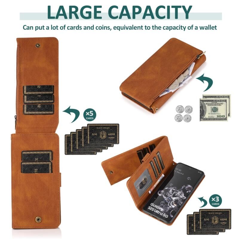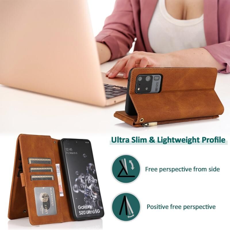 Για Samsung Galaxy S20 Ultra Skin-feel Crazy Horse υφή φερμουάρ τσάντα πορτοφόλι οριζόντια Flip δερμάτινη θήκη με κάτοχο & υποδοχές για κάρτες & πορτοφόλι & Lanyard (καφέ)