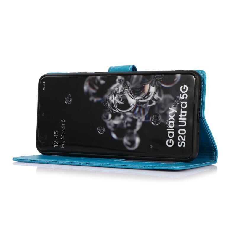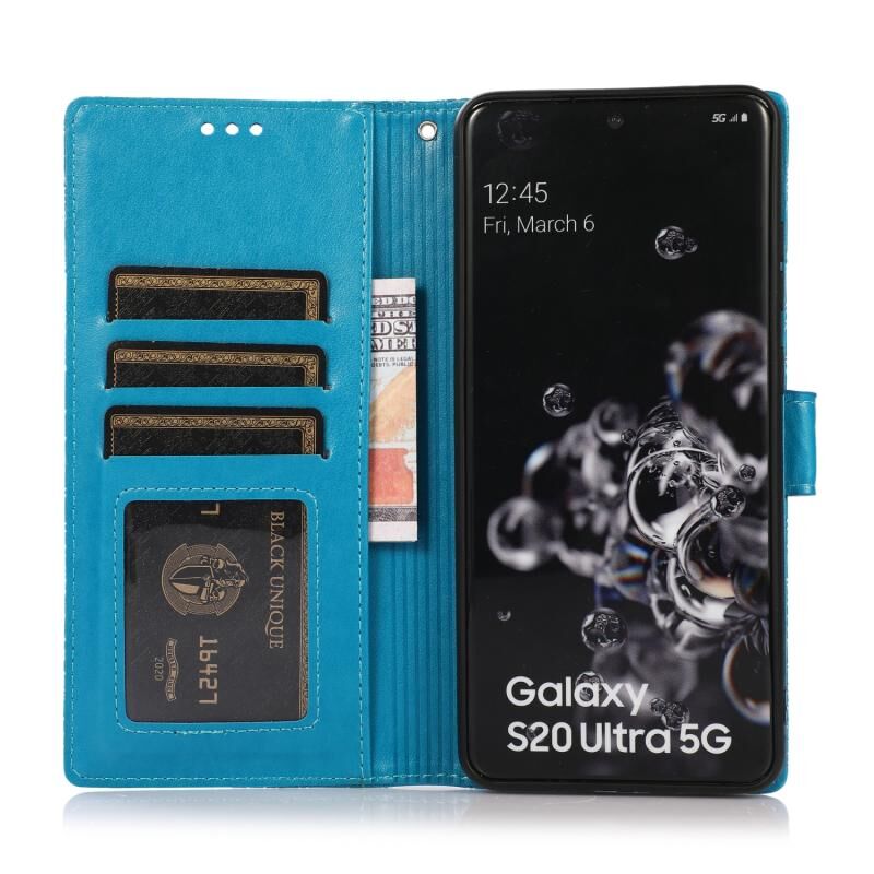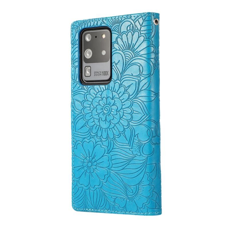 Για Samsung Galaxy S20 Ultra Skin Feel ανάγλυφο ηλιοτρόπιο οριζόντια Flip δερμάτινη θήκη με υποδοχές για κάρτες & πορτοφόλι & κορδόνι (μπλε)
