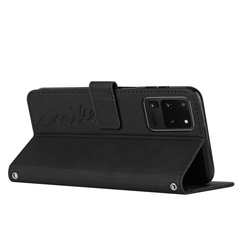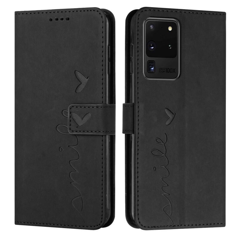 Για Samsung Galaxy S20 Ultra δέρμα αίσθηση καρδιά μοτίβο δερμάτινη θήκη τηλεφώνου (μαύρο)