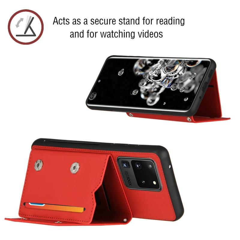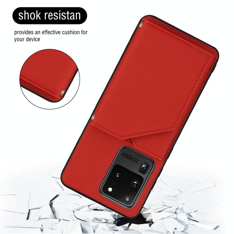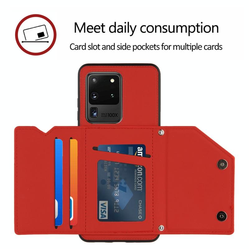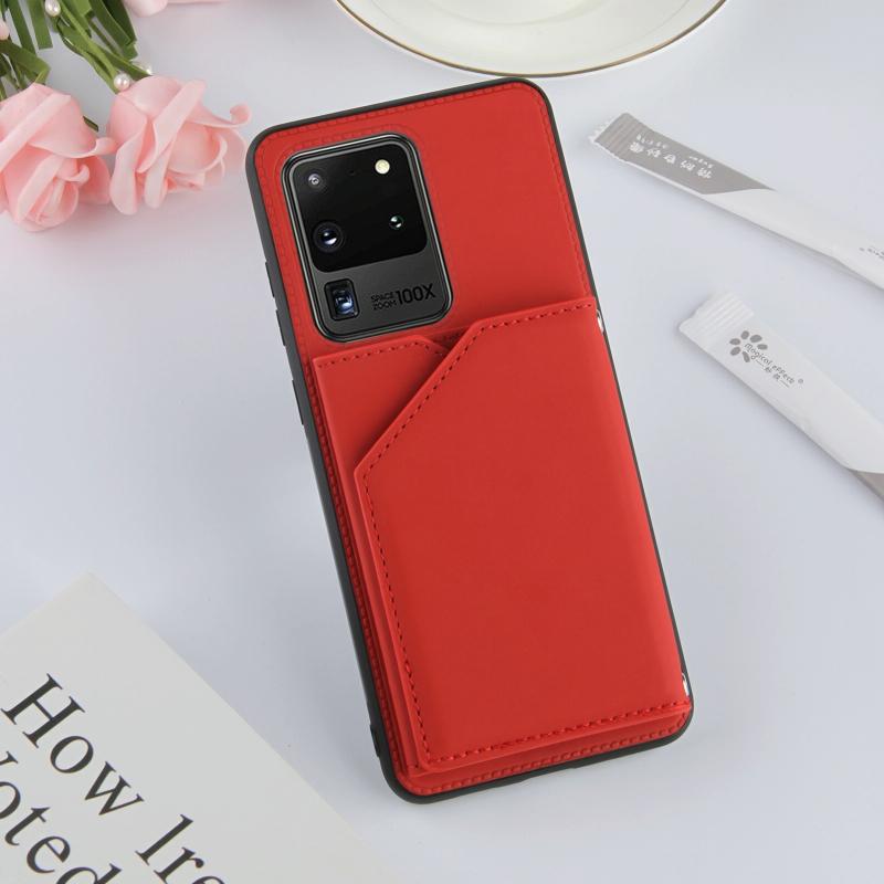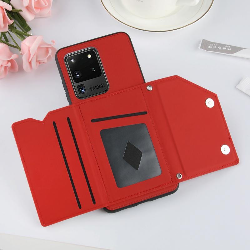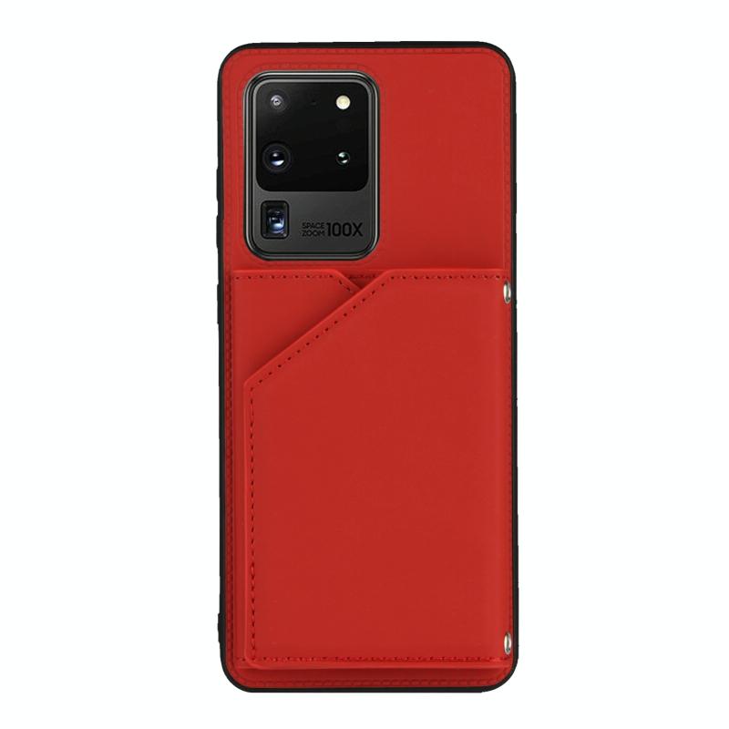 For Samsung Galaxy S20 Ultra Skin Feel PU + TPU + PC Back Cover Shockproof Case with Card Slots & Holder & Photo Frame(Red)