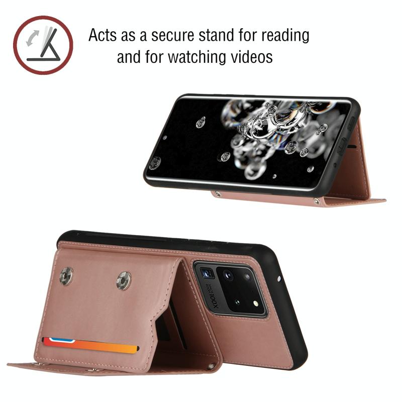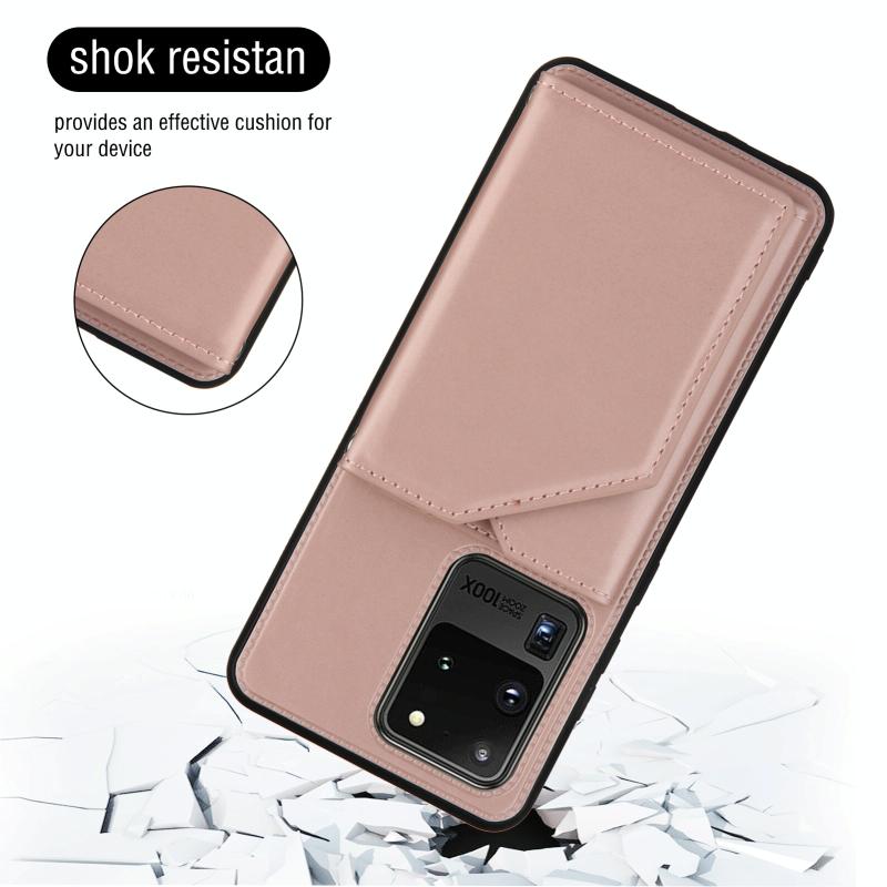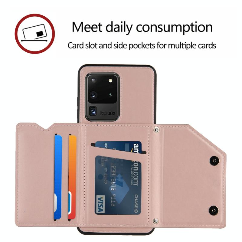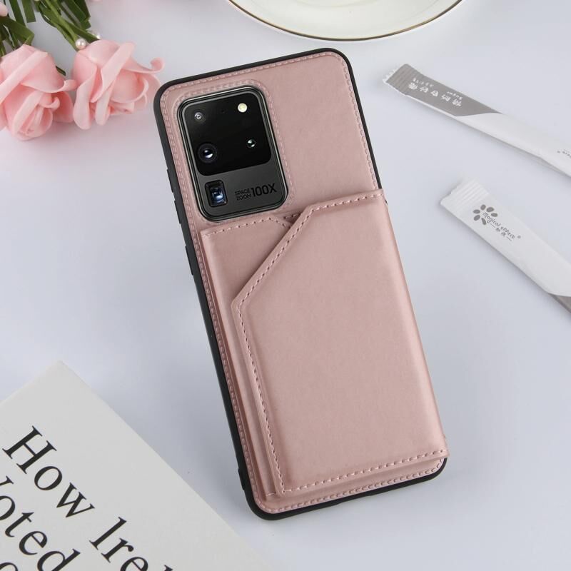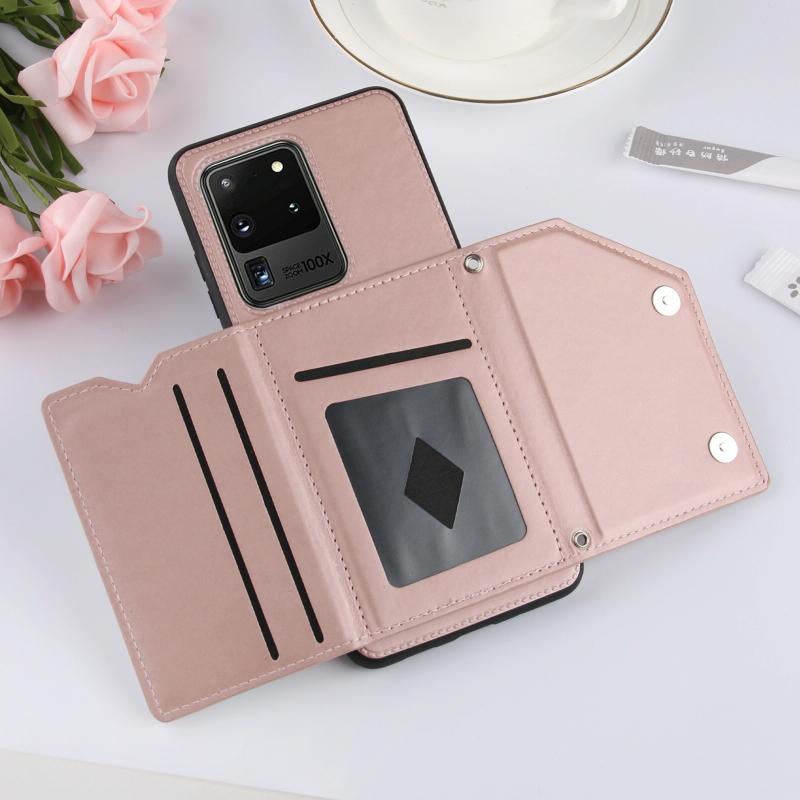 For Samsung Galaxy S20 Ultra Skin Feel PU + TPU + PC Back Cover Shockproof Case with Card Slots & Holder & Photo Frame(Rose Gold)