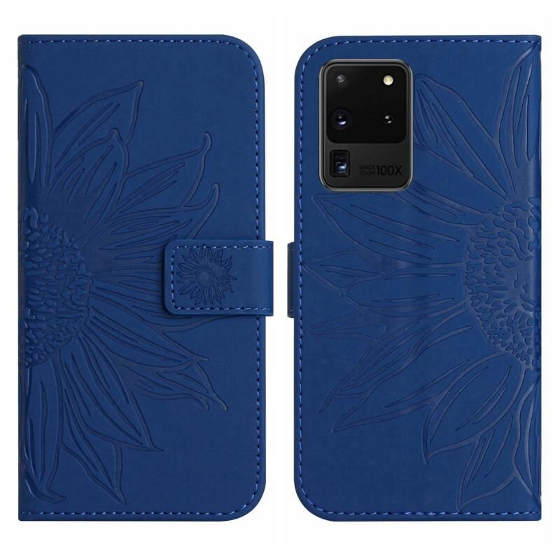 Για το Samsung Galaxy S20 Ultra Skin Feel Sun Flower μοτίβο Flip δέρμα τηλέφωνο υπόθεση με κορδόνι (σκούρο μπλε)