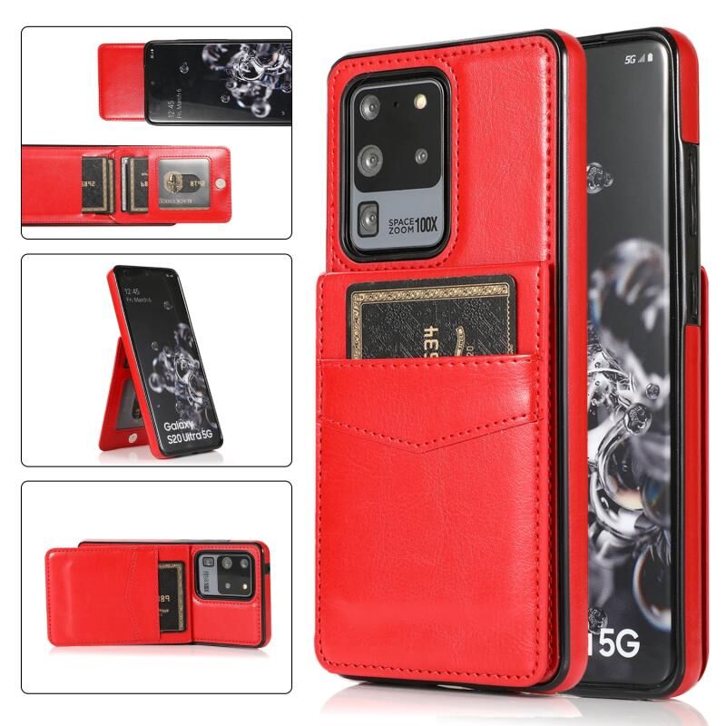 Για Samsung Galaxy S20 Ultra Solid Color PC + TPU προστατευτική θήκη με θήκη & υποδοχές για κάρτες (κόκκινο)