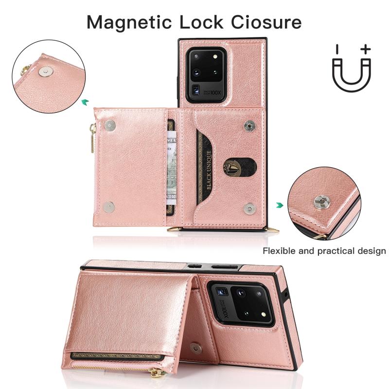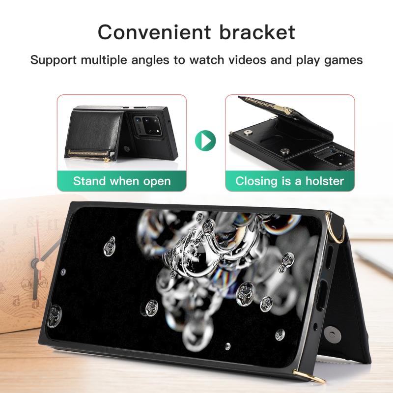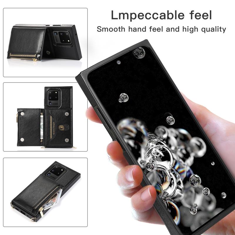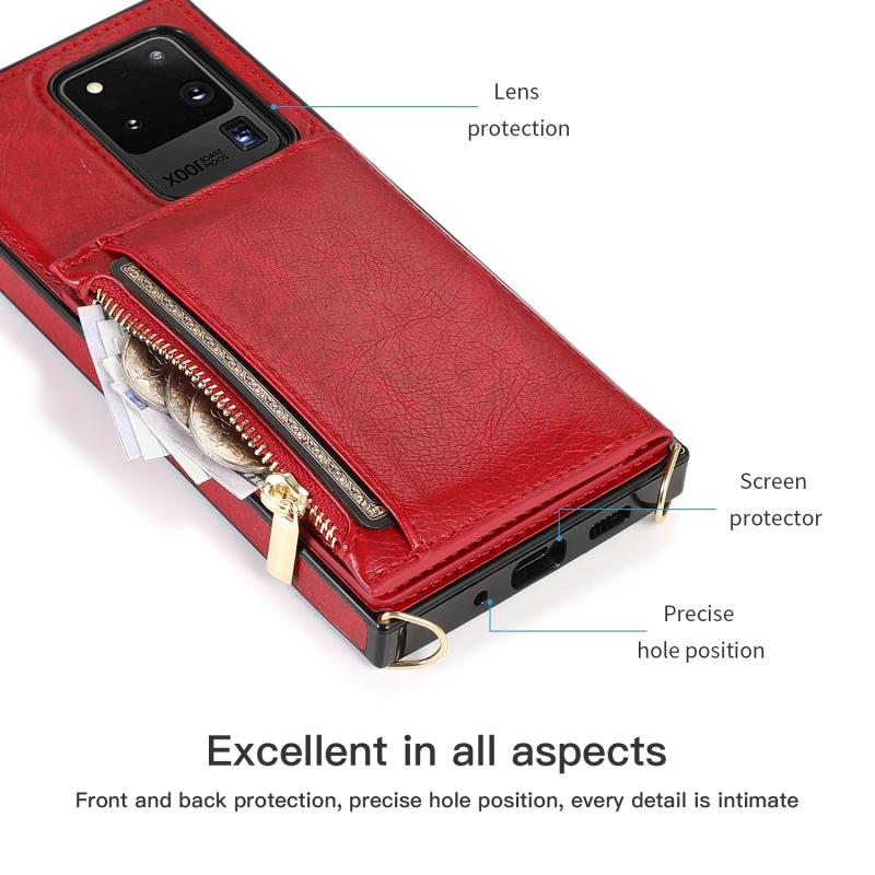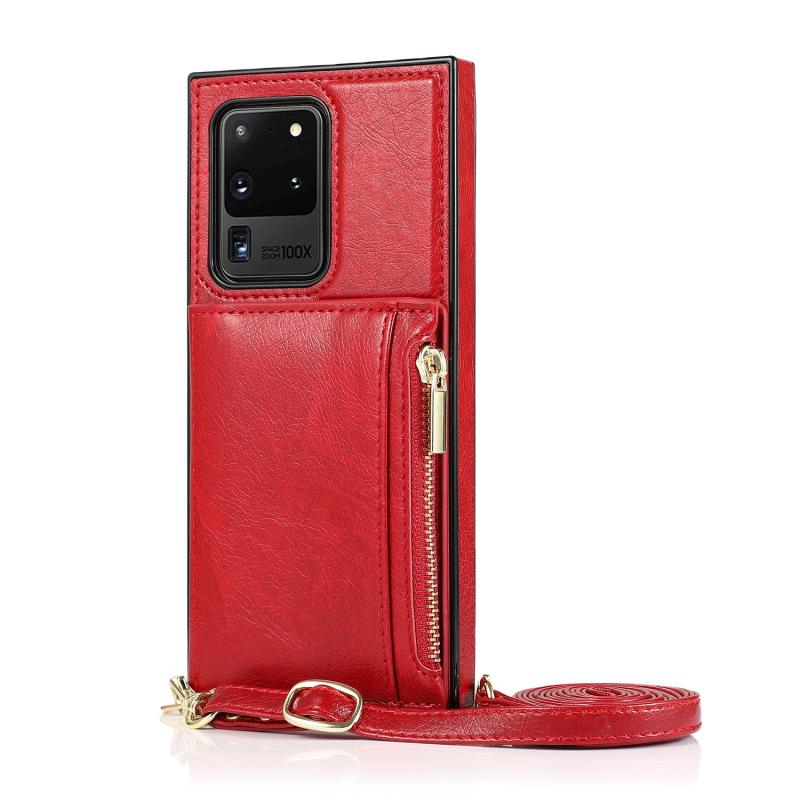 Θήκη για Samsung Galaxy S20 Ultra, Τετράγωνη, με Φερμουάρ, Πορτοφόλι, από TPU+PU, με Λουρί Ώμου, Θήκες Καρτών & Πορτοφόλι (Κόκκινο)