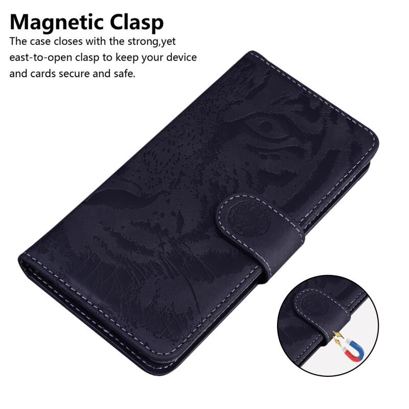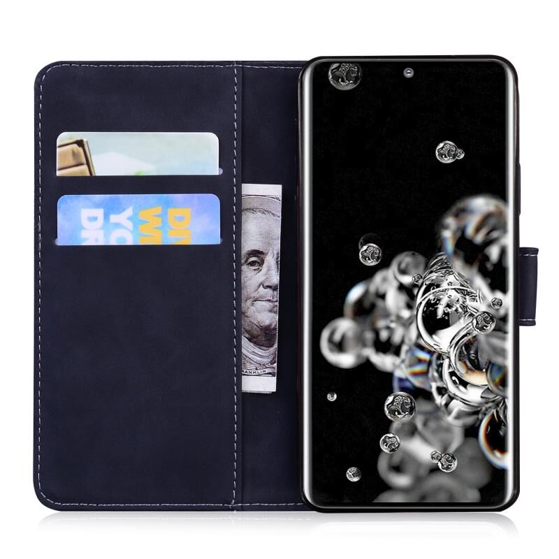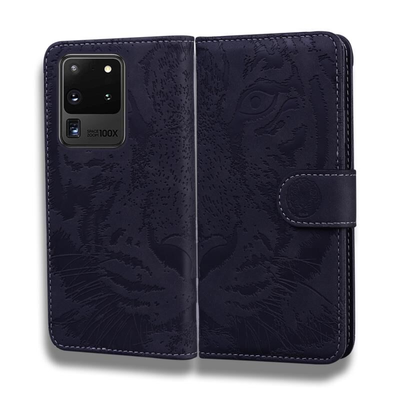 Θήκη δέρματος οριζόντιας αναδίπλωσης με ανάγλυφο σχέδιο τίγρης για Samsung Galaxy S20 Ultra με βάση & υποδοχές καρτών & πορτοφόλι (Μαύρο)