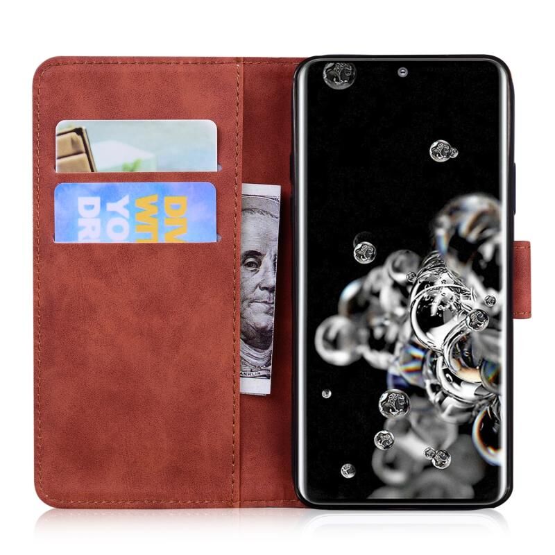 Θήκη δέρματος οριζόντιας αναδίπλωσης με ανάγλυφο σχέδιο τίγρης για Samsung Galaxy S20 Ultra με βάση & υποδοχές καρτών & πορτοφόλι (Καφέ)