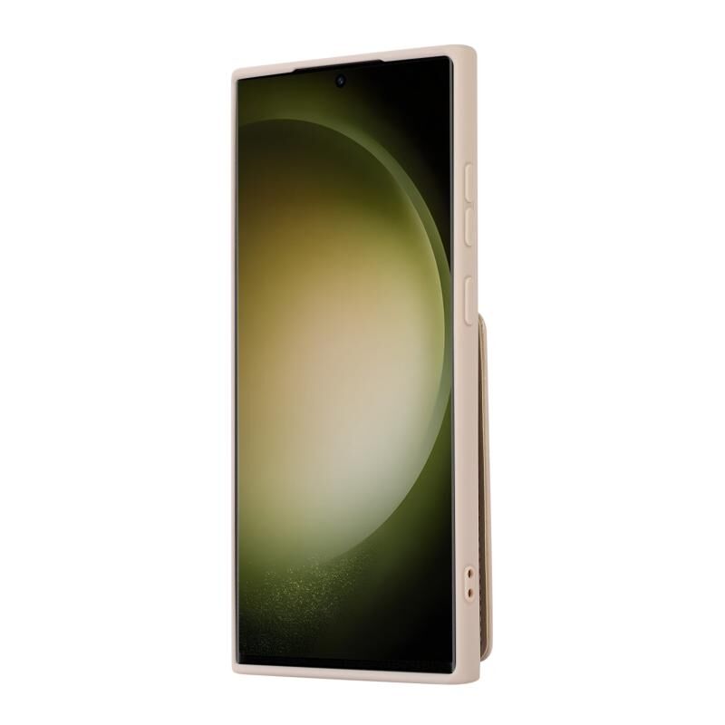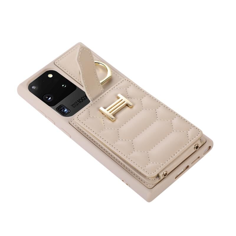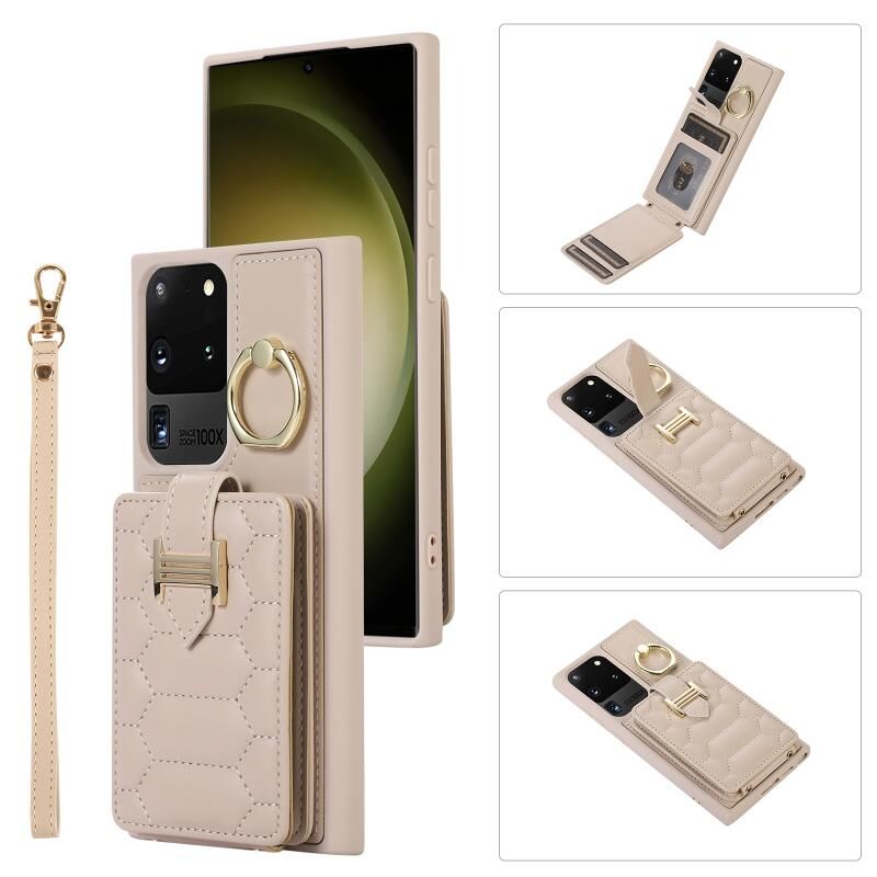 Για Samsung Galaxy S20 Ultra Κάθετη κάρτα τσάντα δαχτυλίδι τσάντα κάτοχος υπόθεση τηλεφώνου με διπλό κορδόνι (Μπεζ)