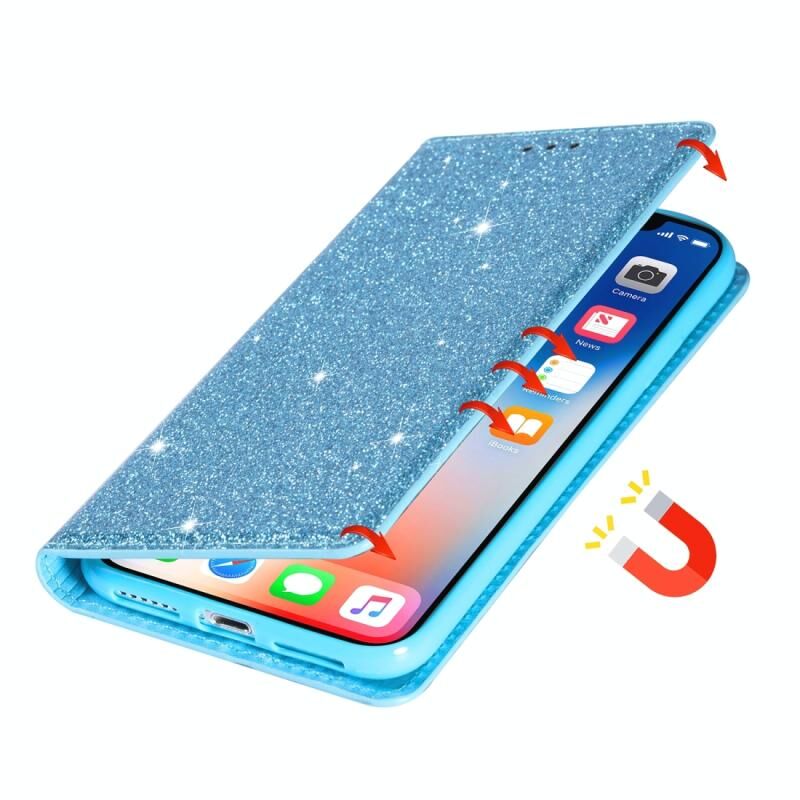 Θήκη Samsung Galaxy S20+ Ultrathin Glitter Μαγνητική Οριζόντια Δερμάτινη με Στήριξη & Θήκες Καρτών (Γαλάζιο του ουρανού)