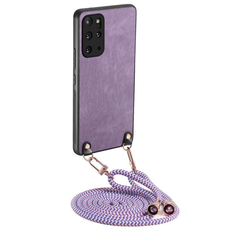 Για Samsung Galaxy S20+ εκλεκτής ποιότητας δέρμα PC πίσω κάλυμμα τηλέφωνο υπόθεση με λουράκι σταυρού (μωβ)