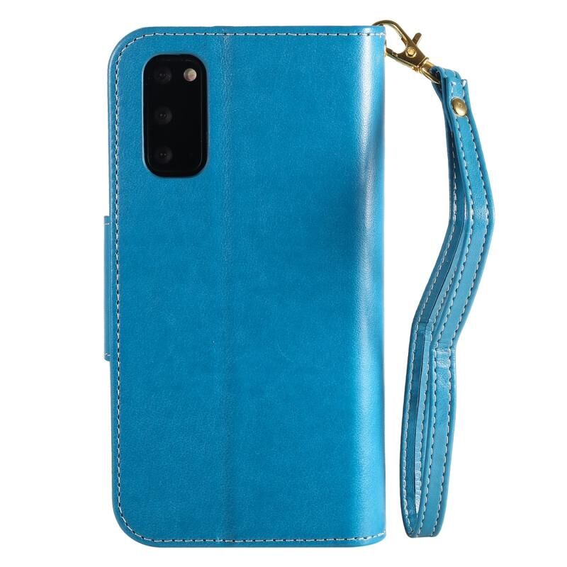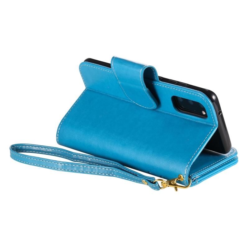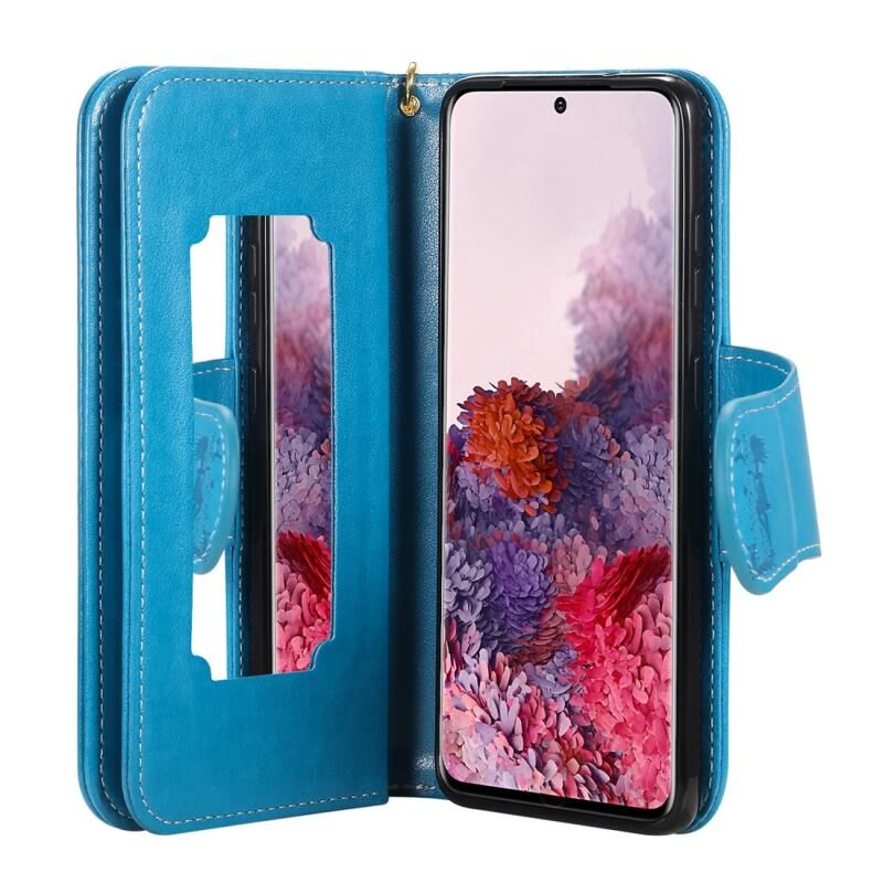 Θήκη Samsung Galaxy S20 για Γυναίκες με ανάγλυφο σχέδιο Γάτας, οριζόντια δερμάτινη θήκη με υποδοχές για κάρτες, βάση, πορτοφόλι, κορνίζα φωτογραφιών, καθρέφτη & λουρί (Μπλε)