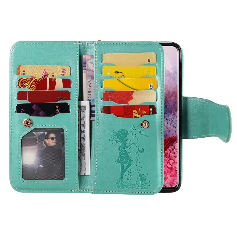 Θήκη Samsung Galaxy S20 για Γυναίκες με ανάγλυφο σχέδιο Γάτας, οριζόντια δερμάτινη θήκη με υποδοχές για κάρτες, βάση, πορτοφόλι, κορνίζα φωτογραφιών, καθρέφτη & λουρί (Γκρι)