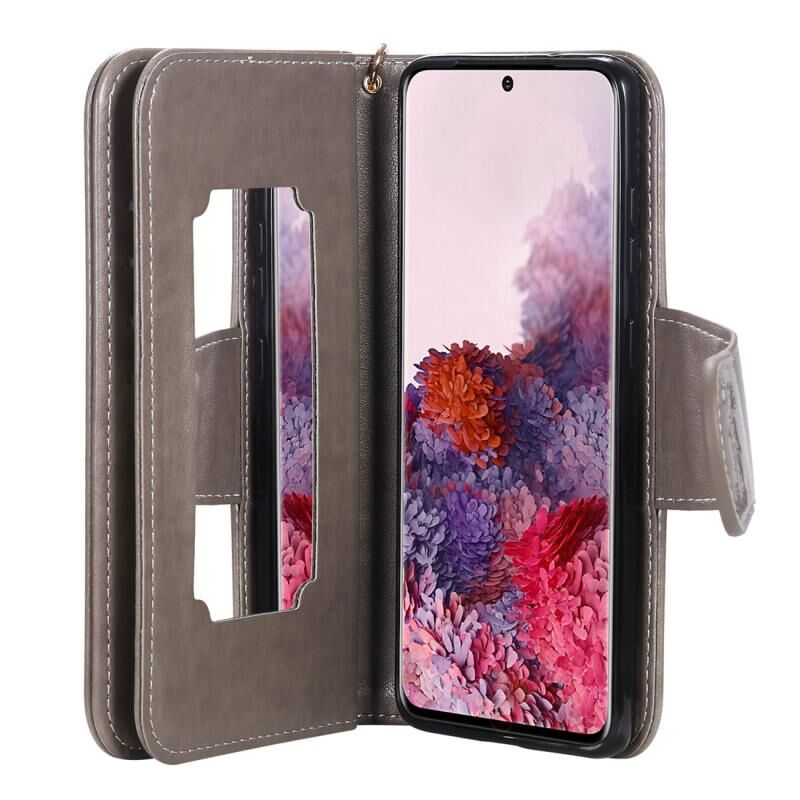 Θήκη Samsung Galaxy S20 για Γυναίκες με ανάγλυφο σχέδιο Γάτας, οριζόντια δερμάτινη θήκη με υποδοχές για κάρτες, βάση, πορτοφόλι, κορνίζα φωτογραφιών, καθρέφτη & λουρί (Γκρι)