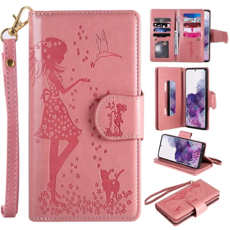Θήκη Samsung Galaxy S20+ για Γυναίκες με ανάγλυφο σχέδιο Γάτας και Κάτοχου, Οριζόντια Δερμάτινη, με Θήκες για Κάρτες & Στήριγμα & Πορτοφόλι & Κορνίζα Φωτογραφιών & Καθρέφτη & Λουρί (Καφέ)