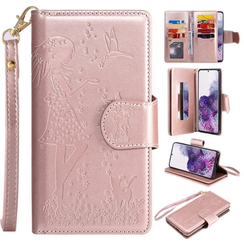 Θήκη Samsung Galaxy S20+ για Γυναίκες με ανάγλυφο σχέδιο Γάτας και Κάτοχου, Οριζόντια Δερμάτινη, με Θήκες για Κάρτες & Στήριγμα & Πορτοφόλι & Κορνίζα Φωτογραφιών & Καθρέφτη & Λουρί (Καφέ)