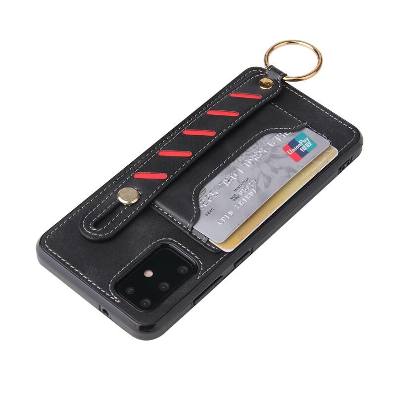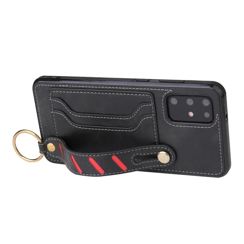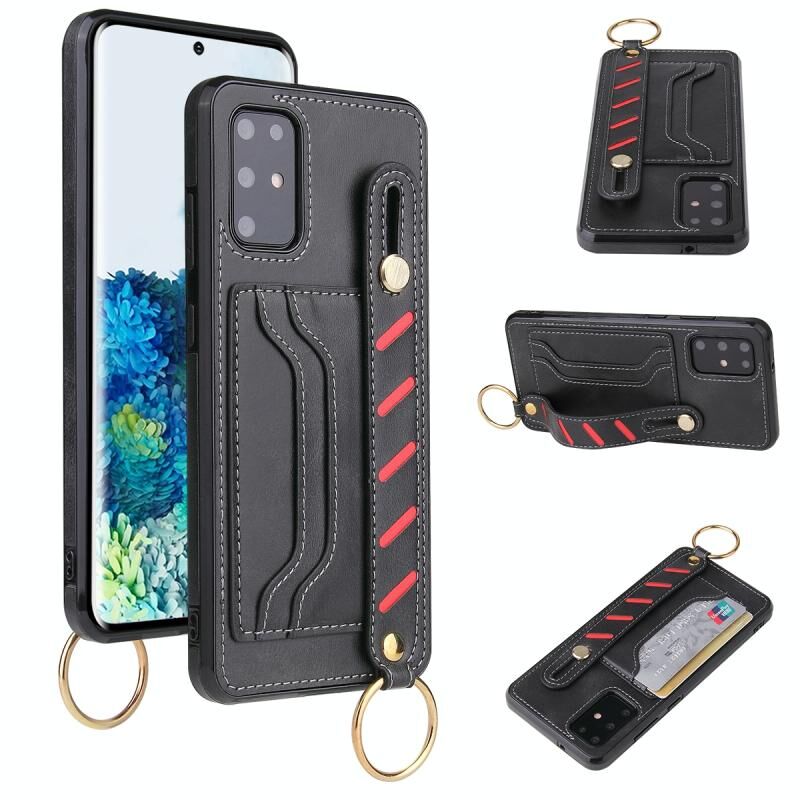 Για Samsung Galaxy S20+ Wristband πορτοφόλι δερμάτινη θήκη τηλεφώνου (Μαύρο)