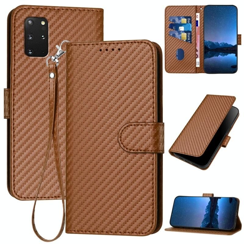 Για Samsung Galaxy S20+ YX0070 Carbon Fiber πόρπη δερμάτινη θήκη τηλεφώνου με κορδόνι (Καφέ)