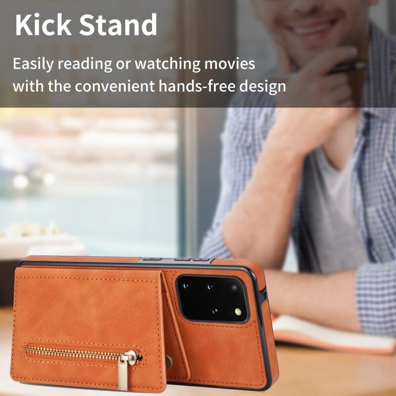 Θήκη κινητού τηλεφώνου με κάρτες και φερμουάρ για Samsung Galaxy S20+ (Καφέ)