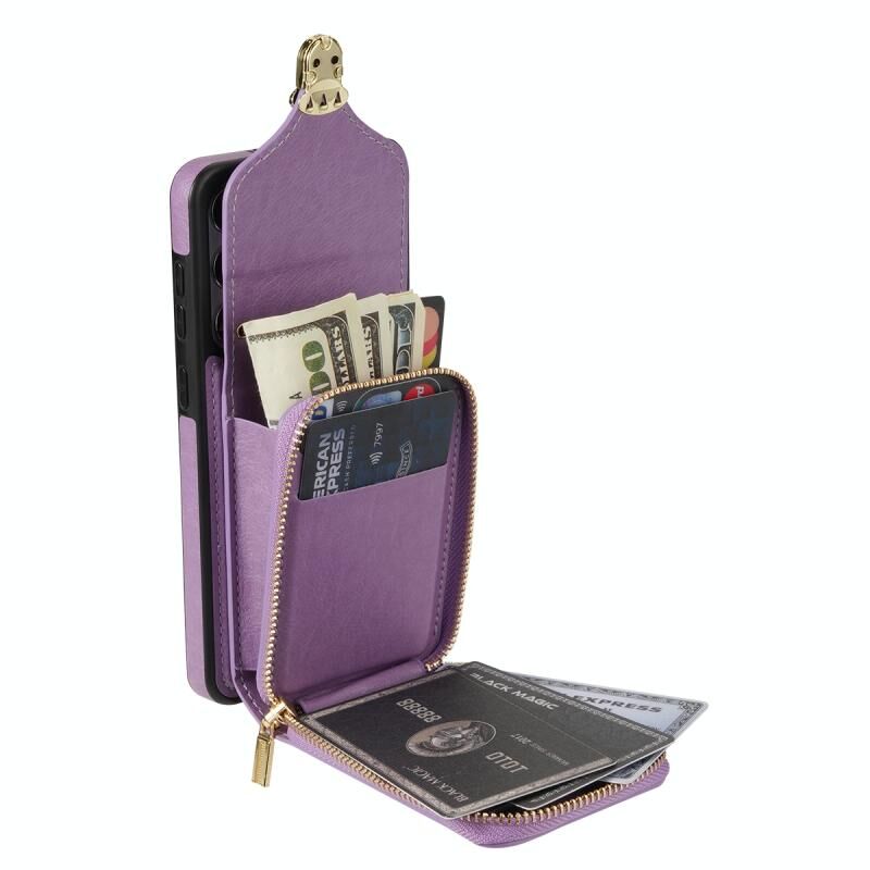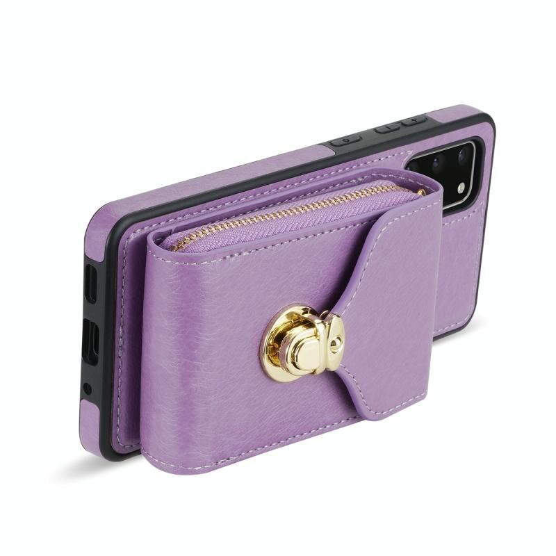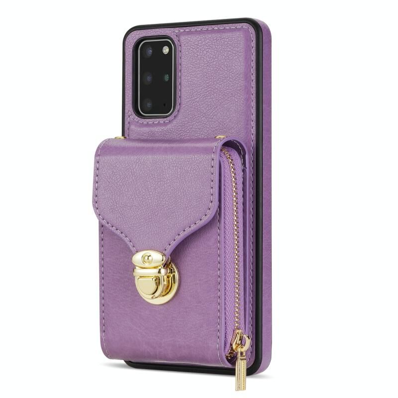 Για Samsung Galaxy S20 φερμουάρ υλικό κάρτα πορτοφόλι τηλέφωνο υπόθεση (μωβ)