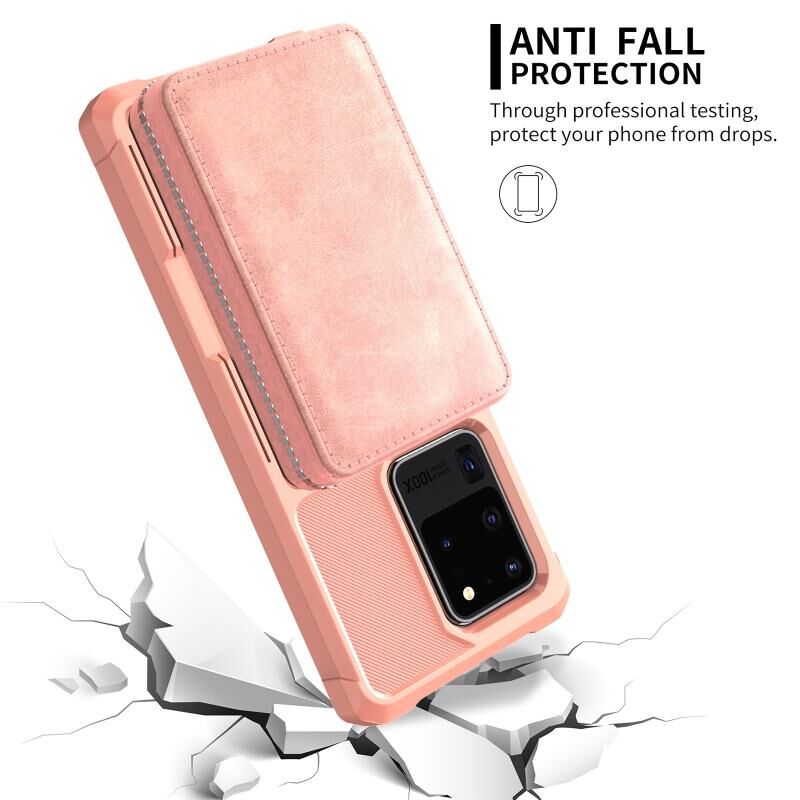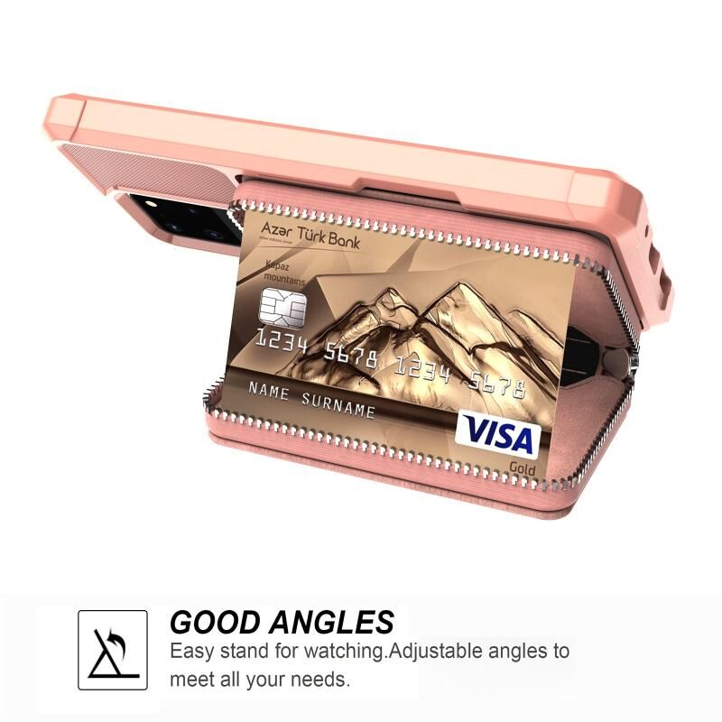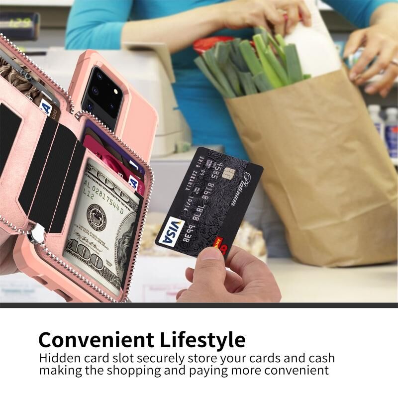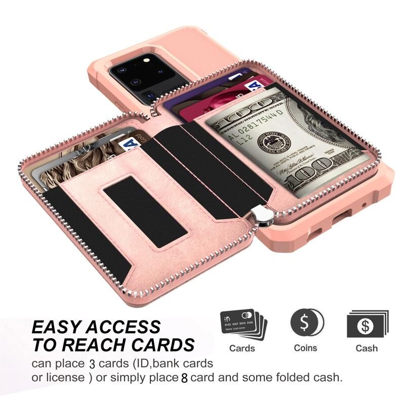 Θήκη κινητού Samsung Galaxy S20 με φερμουάρ, τσέπη για κάρτες, από PU δέρμα (Ροζ χρυσός)