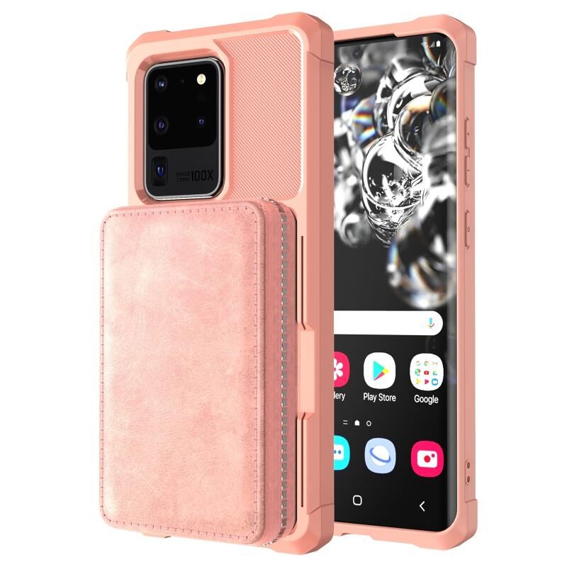 Θήκη κινητού Samsung Galaxy S20+ με φερμουάρ, τσέπη για κάρτες, από PU δέρμα (Ροζ χρυσός)