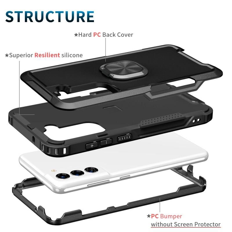 Για το Samsung Galaxy S21 5G 3 σε 1 δαχτυλίδι κάτοχος PC + TPU τηλέφωνο υπόθεση (μαύρο)