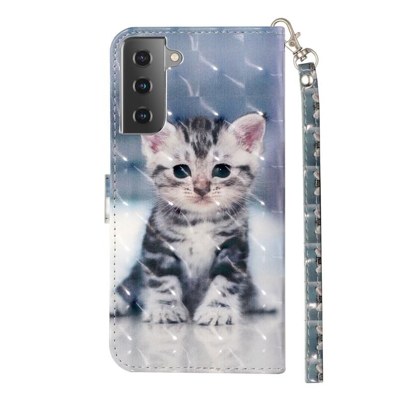 Θήκη δέρματος οριζόντιας αναδίπλωσης με τρισδιάστατο σχέδιο για Samsung Galaxy S21+ 5G με βάση στήριξης & υποδοχές καρτών & πορτοφόλι & κορδόνι (Γατάκι)