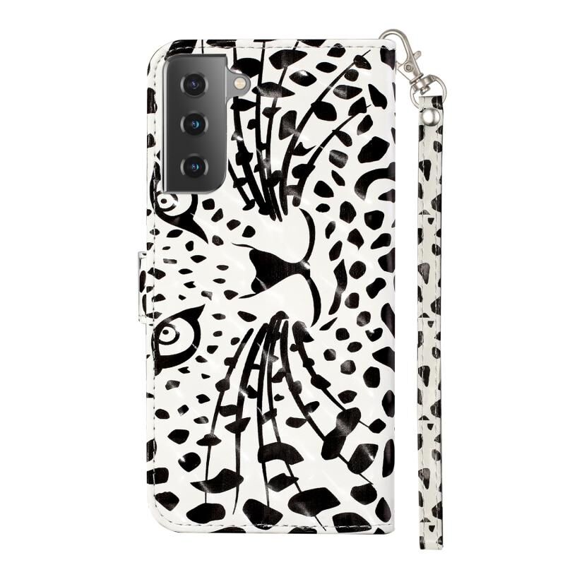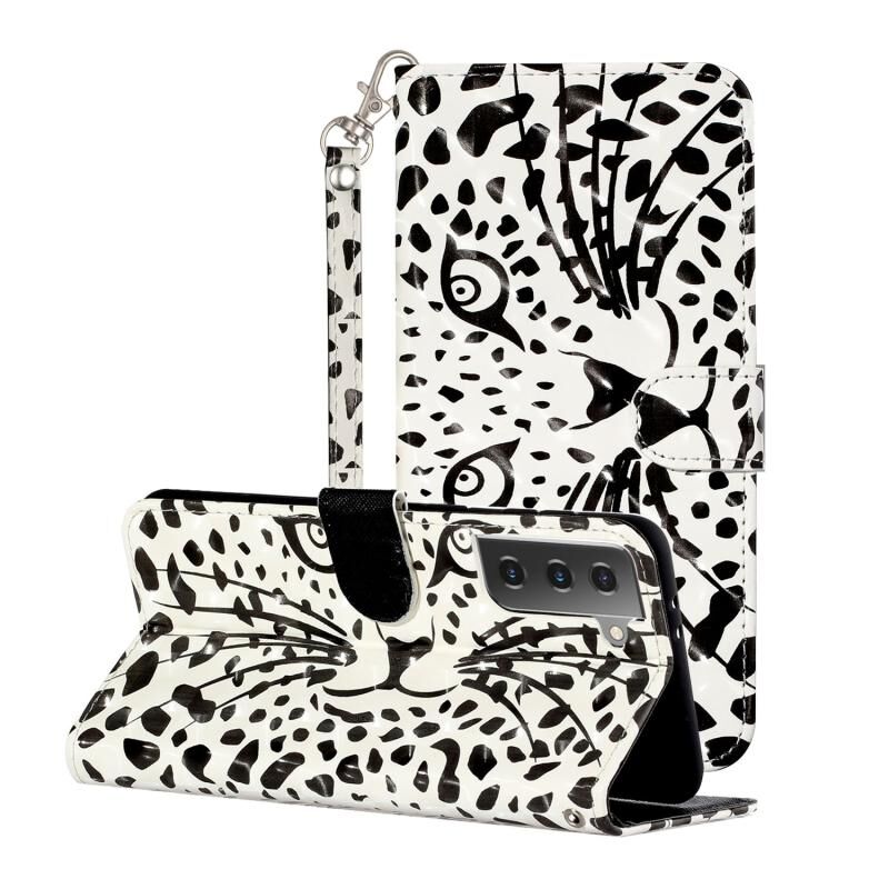 Θήκη δέρματος οριζόντιας αναδίπλωσης 3D με σχέδιο για Samsung Galaxy S21+ 5G με βάση & υποδοχές καρτών & πορτοφόλι & λουρί (Κεφάλι Λεοπάρδαλη).