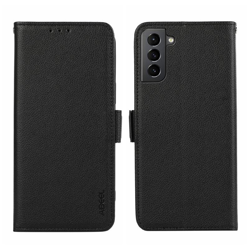 Θήκη κινητού τηλεφώνου Samsung Galaxy S21 5G ABEEL με μαγνητικό κλείσιμο, δερμάτινη με ανάγλυφο λitchi και προστασία RFID (Μαύρο)