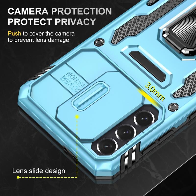 Για Samsung Galaxy S21+ 5G θωράκιση PC + TPU κάμερα ασπίδα τηλέφωνο υπόθεση (ανοιχτό μπλε)