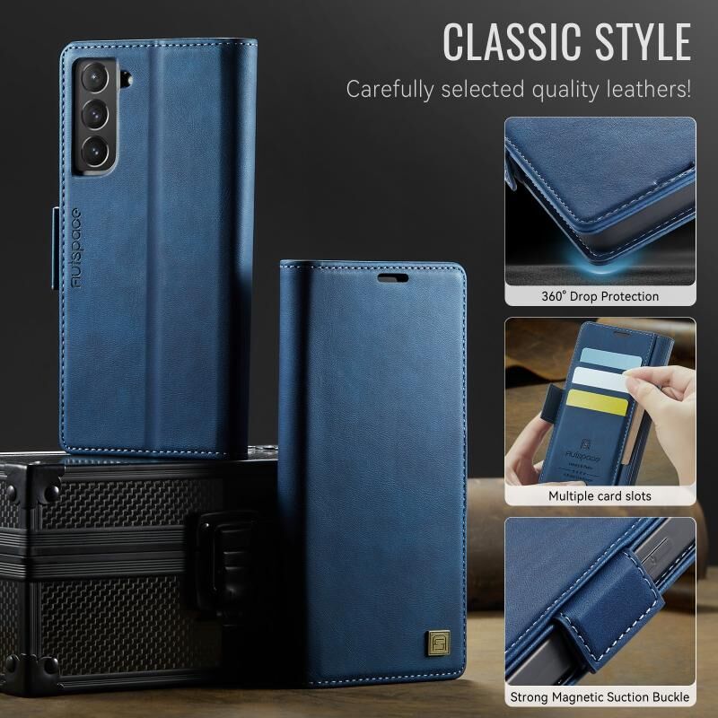 For Samsung Galaxy S21+ 5G AutSpace A11 Side Buckle MagSafe Magnetic RFID Phone Leather Case(Blue) (AutSpace)