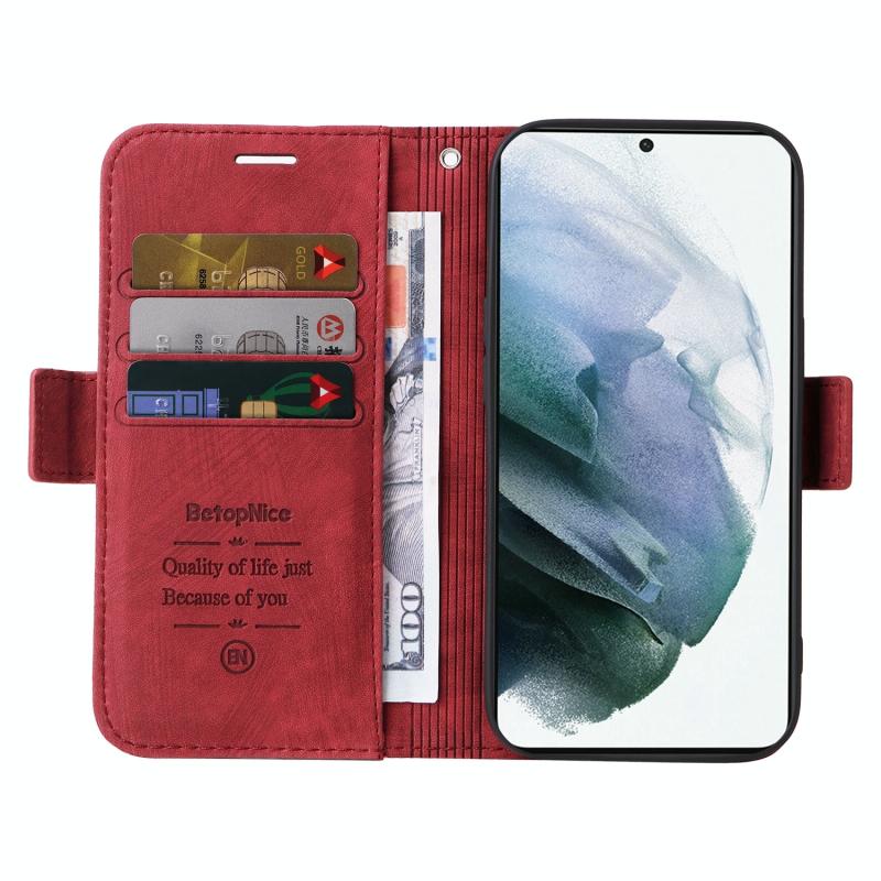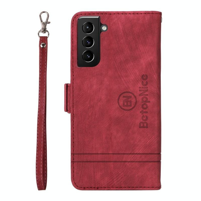 Θήκη τηλεφώνου δερμάτινη διπλής όψης με πόρπη για Samsung Galaxy S21 5G BETOPNICE (Μωβ) (Κόκκινο)