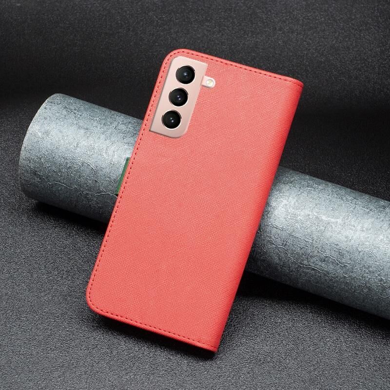 Για Samsung Galaxy S21 5G BF13 χρώμα ταιριάζει με σταυρό υφή δερμάτινη θήκη τηλεφώνου (κόκκινο)