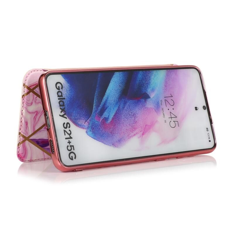 Θήκη δέρματος οριζόντιας αναδίπλωσης PU + TPU με επίστρωση μπρούντζου για Samsung Galaxy S21+ 5G με βάση & υποδοχή κάρτας (Μαύρο)