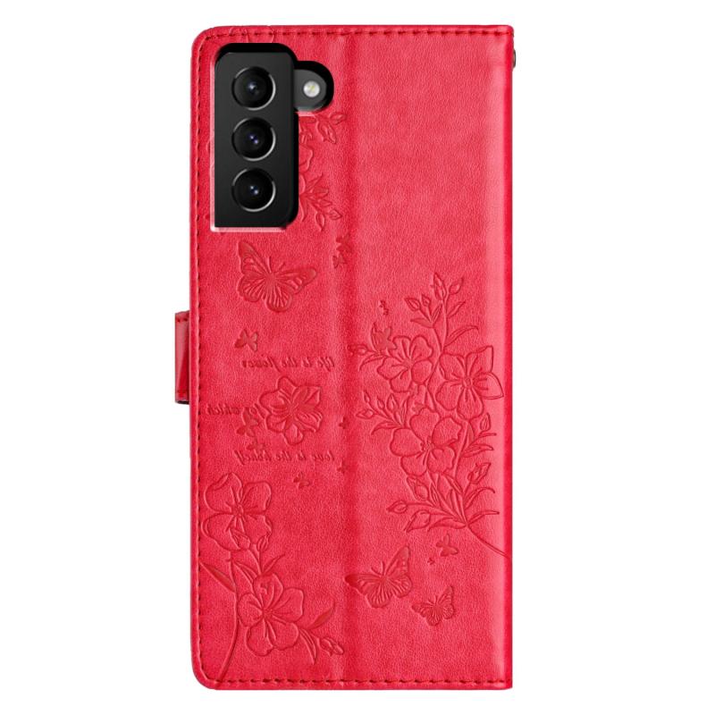 For Samsung Galaxy S21+ 5G Butterflies and Flowers Leather Phone Case(Red)