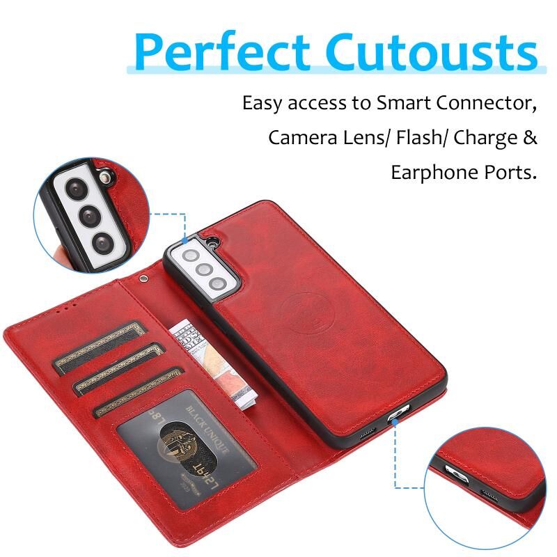 Για Samsung Galaxy S21+ 5G Calf Texture 2 σε 1 Αποσπώμενο μαγνητικό κάλυμμα πλάτης Οριζόντια Flip δερμάτινη θήκη με θήκη & υποδοχές για κάρτες & πορτοφόλι & κορνίζα φωτογραφιών (κόκκινο)