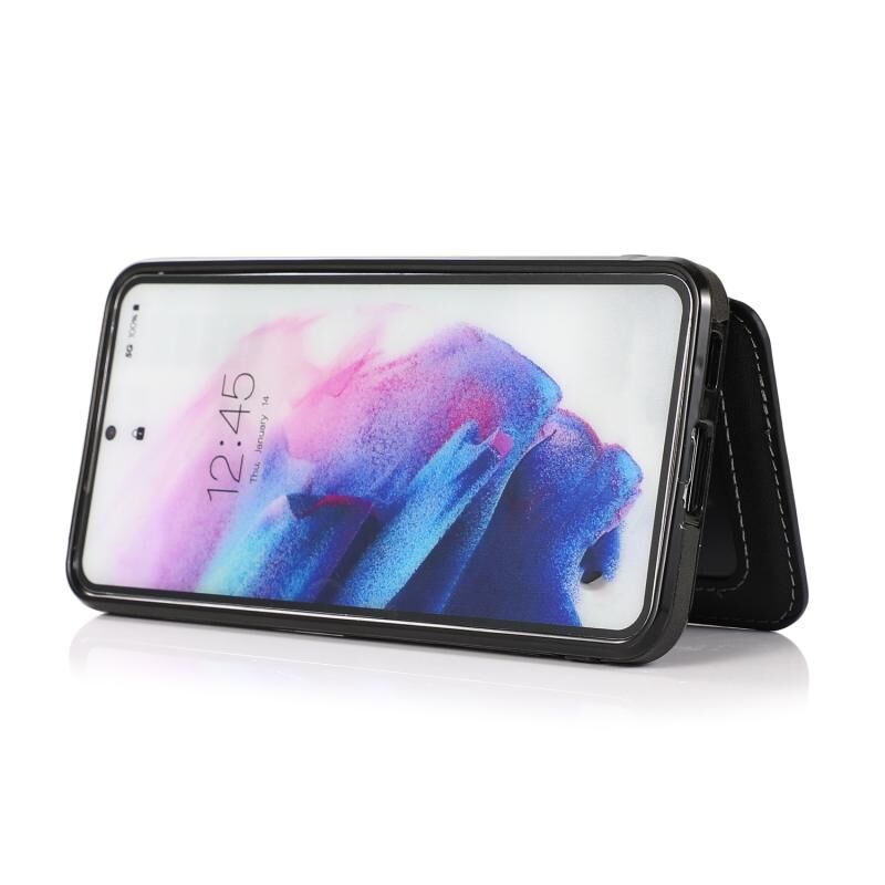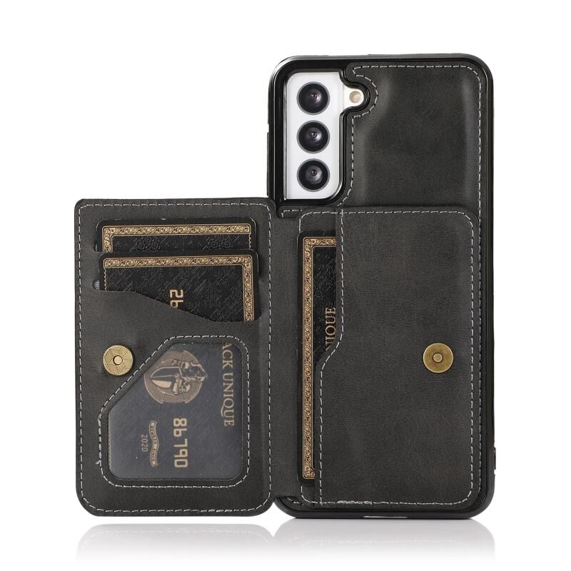Για Samsung Galaxy S21+ 5G Calf υφή μαγνητική κάρτα τσάντα PU τηλέφωνο υπόθεση (Μαύρο)