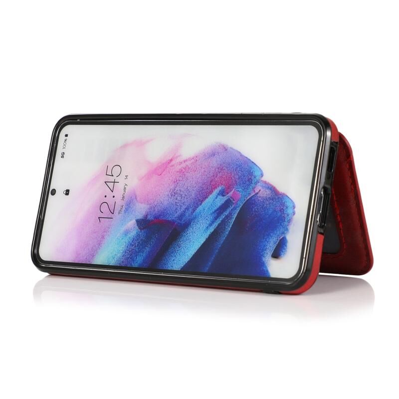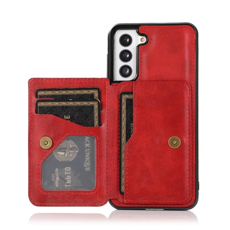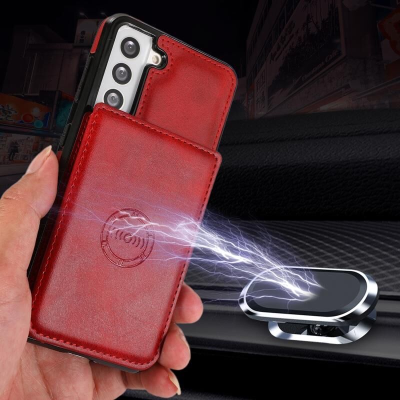 Για Samsung Galaxy S21+ 5G μοσχάρι υφή μαγνητική κάρτα τσάντα PU υπόθεση τηλεφώνου (κόκκινο)